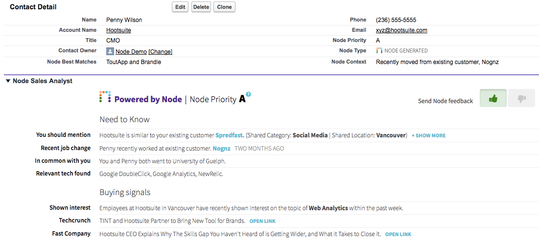 Einblicke in eine Person können helfen, ein Gespräch anzuregen. Wenn Sie als Erster bahnbrechende Unternehmensnachrichten teilen, können Sie einen interessanten Standpunkt teilen. Zu wissen, dass der Käufer Ihrem CMO nahe steht, kann zu einer herzlichen Einführung führen.