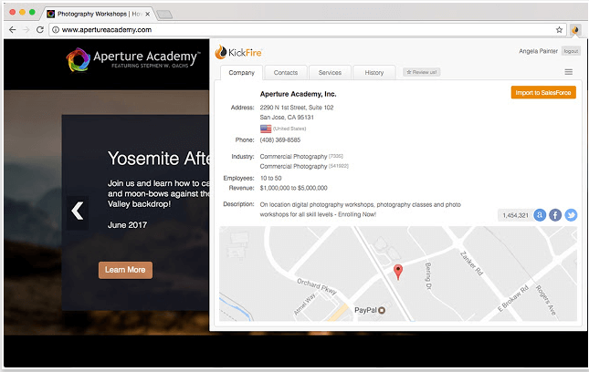 KickFire Prospector verspricht, die Zeit zu verkürzen, die Ihr Vertriebsteam mit der Suche verbringt, die Anzahl qualifizierter Konten in der Vertriebspipeline zu erhöhen und die Produktivität zu maximieren. Es bietet auch eine Browsererweiterung, mit der Leads gefunden, verifizierte Kontaktinformationen abgerufen und neue Konten in Ihr CRM übertragen werden können – und das alles, ohne eine Website verlassen zu müssen. KickFire bietet auch IP-Adressintelligenz und B2B-firmografische Daten, mit denen Sie IP-Adressen an Unternehmen übersetzen, anonyme Webbesucher identifizieren und Kontodaten in Ihren Technologie-Stack integrieren können – alles basierend auf der IP-Adresse des Unternehmens