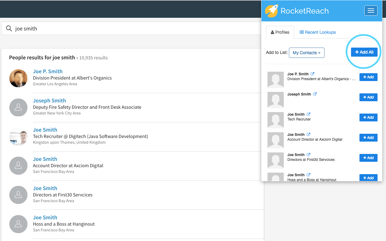 RocketReach macht es Benutzern wirklich einfach, Kontaktinformationen für Verkaufsinteressenten zu finden – und es verspricht auch, dabei sehr genau zu sein (es verfügt über eine Genauigkeit von über 87 % und einen Datensatz, der über 400 Millionen Fachleute aus 6 Millionen Unternehmen umfasst). RocketReach hat derzeit über eine Million registrierte Benutzer und genießt das Vertrauen des Who is Who des S&P 500 – darunter Kunden wie Amazon, Facebook, Google, Morgan Stanley.
