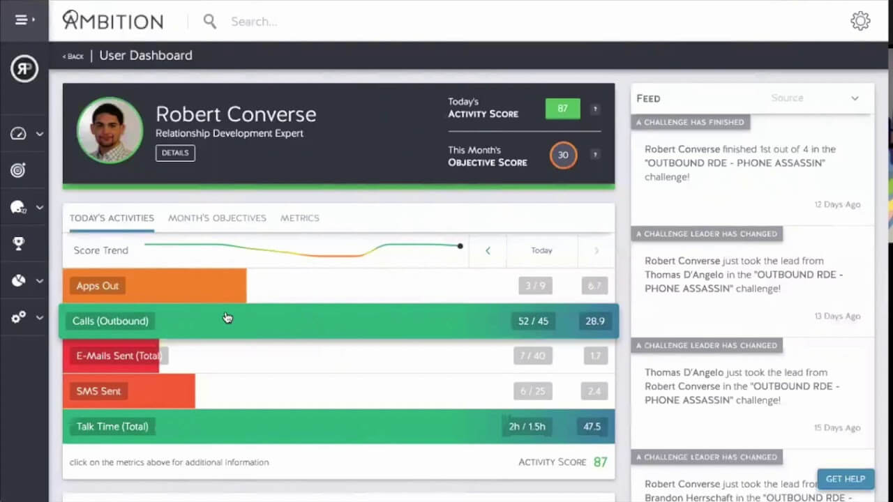 Ehrgeiz steigert den Wert der Verkaufsakquise, indem es den Vertriebsmitarbeitern die Kontrolle über ihre Leistung gibt. Die Plattform synchronisiert sich mit Plattformen wie Salesforce, Outreach und Dialern wie 8×8, DialSource und New Voice Media, um Vertriebsteams Sichtbarkeit, Kontext, Feedbackschleifen, öffentliche Anerkennung und Coaching-Einblicke zu geben, die dazu beitragen, die Zusammenarbeit, Autonomie und Ergebnisse zu verbessern Verkaufsfläche.