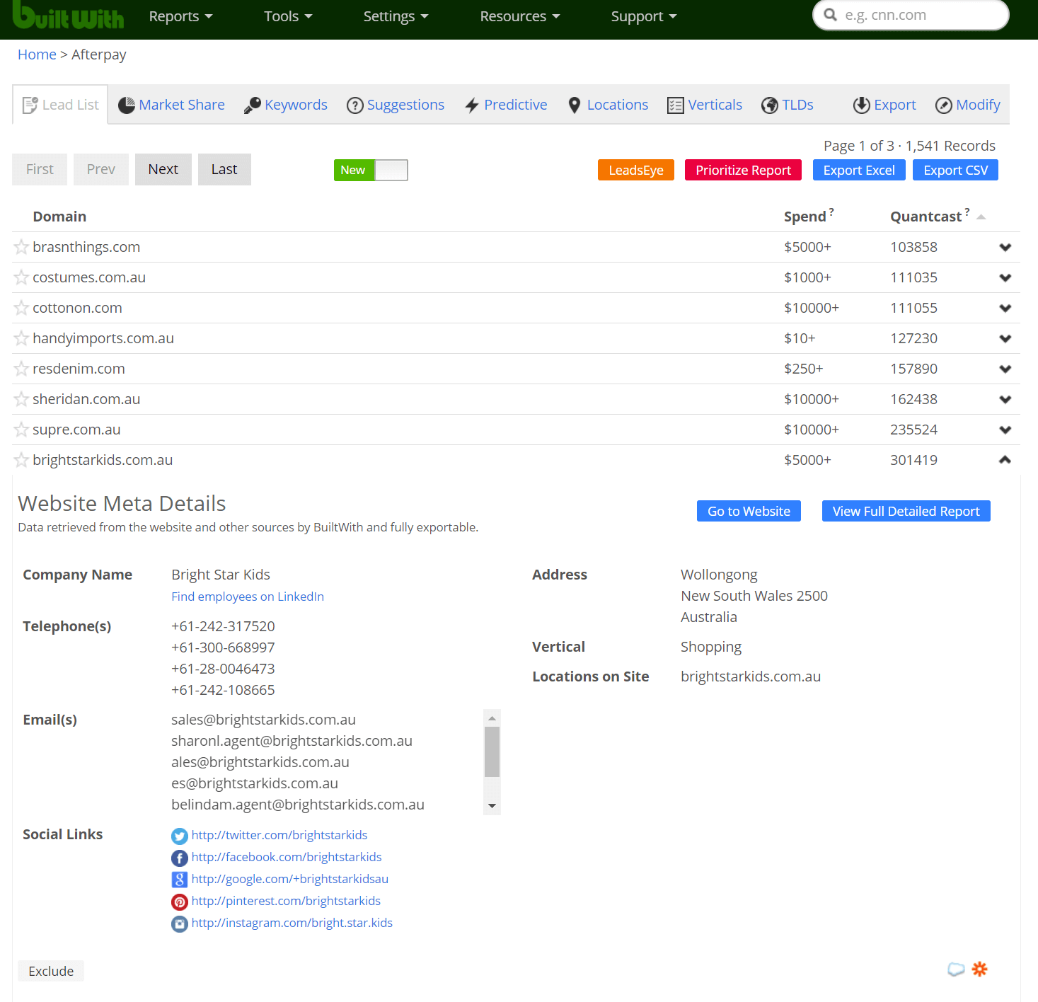 Die Plattform ist so konfiguriert, dass Benutzer die API einfach in ihre CRM-, Vertriebs-, Marketing- oder E-Mail-Plattform integrieren und sie mit sozialen Profilen, Affinitäten und demografischen Daten erweitern können. Benutzer können auch ähnliche Interessenten erstellen, die ihnen helfen, ihre wertvollsten Kunden zu verstehen und zusätzliche Interessenten aus einer globalen Datenbank von Unternehmen und Personen zu entdecken.