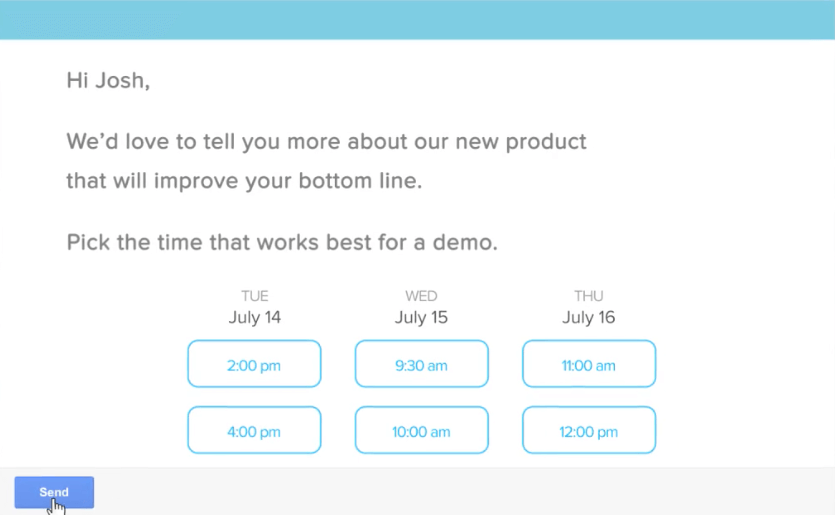 Potenzielle Kunden können Demos und Beratungen mit Ihrem Unternehmen direkt auf Ihrer Website oder über personalisierte Einladungen in Ihrer E-Mail-Marketingkampagne planen. Wenn Sie in Ihrer E-Mail-Marketingkampagne eine Online-Terminplanung anbieten, erhält jeder E-Mail-Empfänger einen personalisierten Link. Sie wählen einfach eine Zeit aus und fertig. Ernsthafte Leads werden für Sie herausgefiltert und Sie werden feststellen, dass sie bereits einen Termin für ein Treffen mit Ihnen vereinbart haben.