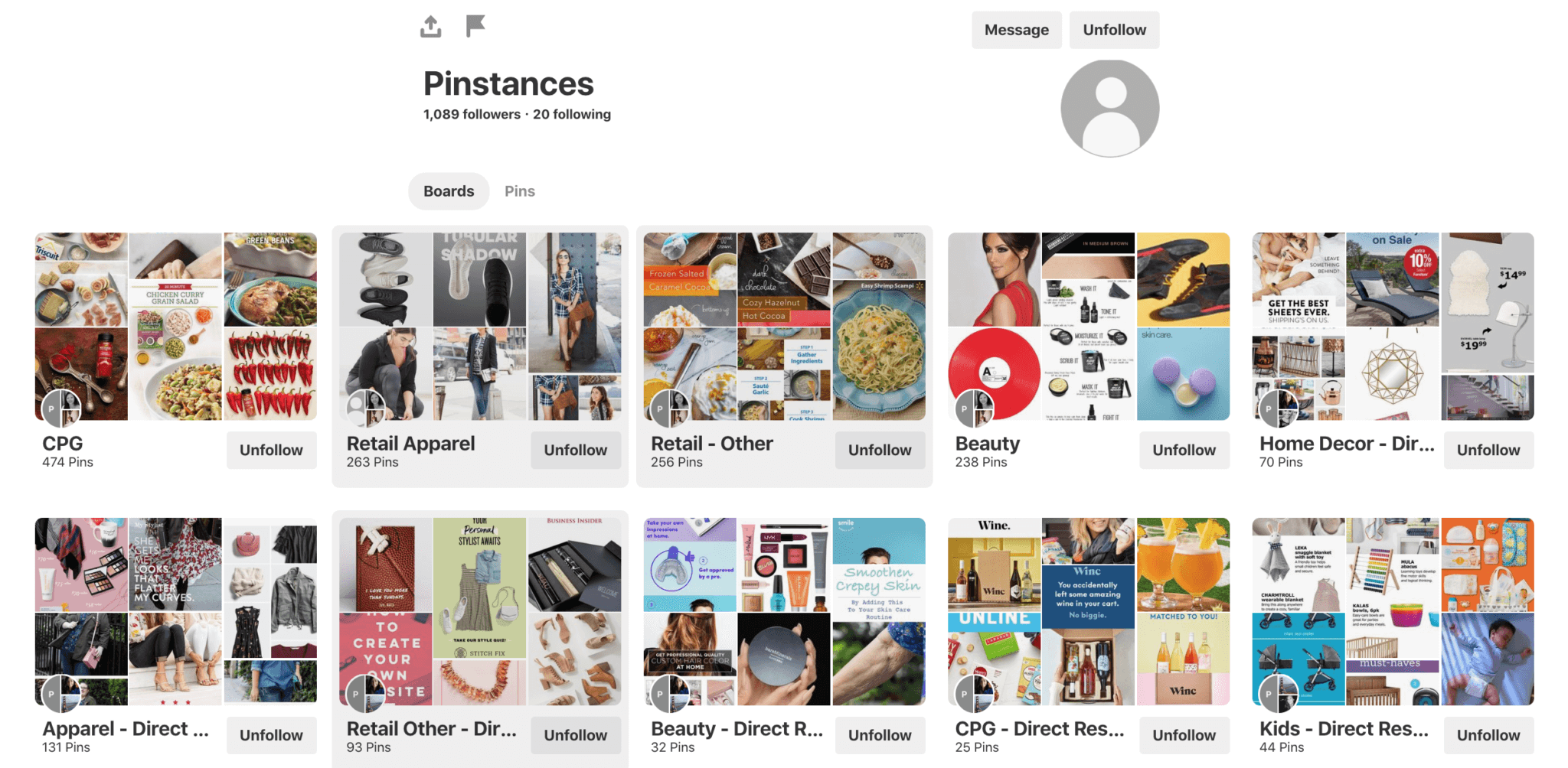 Sie können und sollten Ihre Inhalte an mehr als eine Pinnwand anheften. Es hat sich bewährt, ein Board zu haben, das alle Ihre Blog- und Kataloginhalte enthält und sonst nichts. Sie werden wahrscheinlich feststellen, dass Board als einzigartige Ressource im Pinterest-Universum in Bezug auf Engagement und Traffic gut abschneidet.