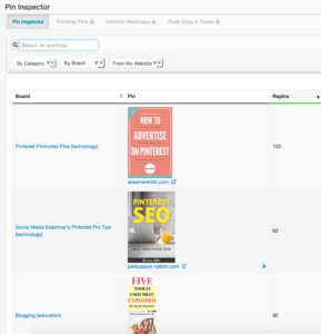 Im Pin-Inspektor von Tailwind können Sie sehen, welche Pins die meisten Repins generieren. Suchen Sie in Pinterest Analytics nach den Pins, die die meisten Klicks generieren.