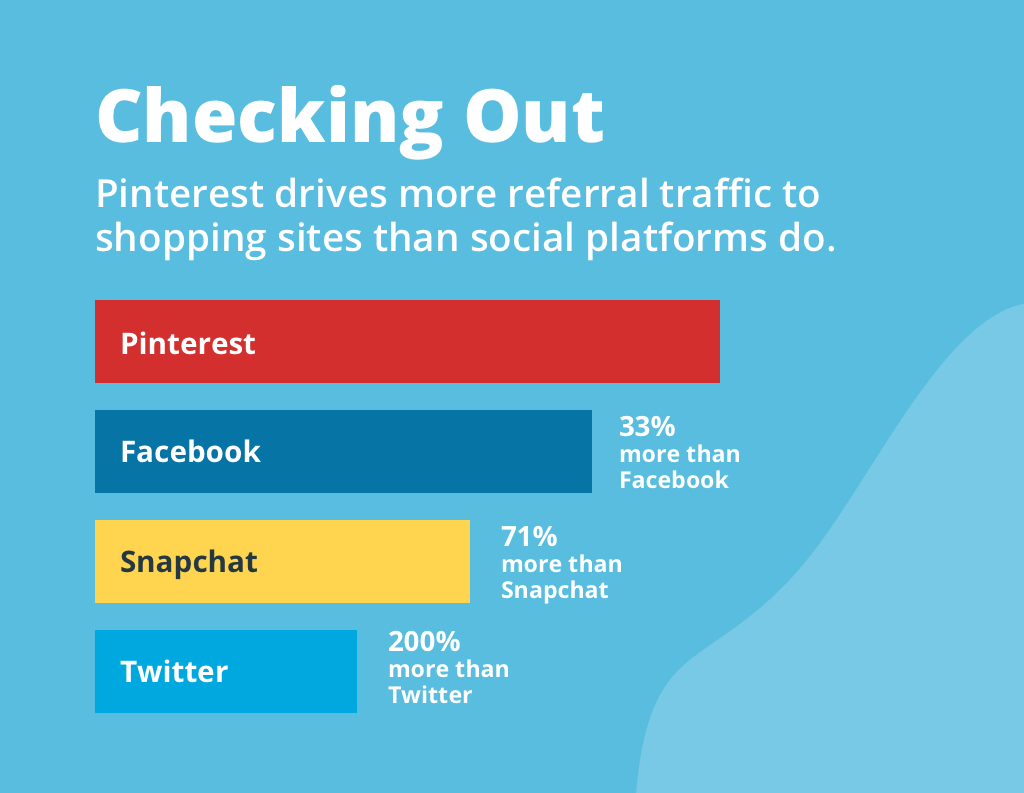 Und was den Traffic betrifft, nun, Pinterest bringt 33 % mehr Referral-Traffic auf Einkaufsseiten als Facebook, 71 % mehr als Snapchat und 200 % mehr als Twitter! Das Potenzial für IHREN Online-Shop auf Pinterest ist eindeutig riesig.