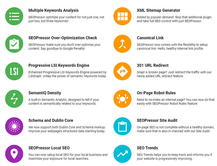 Hier sind einige der Funktionen, die SEOPressor mitbringt: