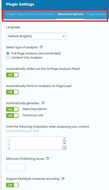 In den erweiterten Optionen können Sie auswählen, ob SEOPressor nur Inhalte oder Ihre gesamte Website analysiert. Sie können auch entscheiden, ob Sie die automatische On-Page-Analyse von SEOPressor sehen möchten oder nicht, indem Sie den Kippschalter ein- oder ausschalten.