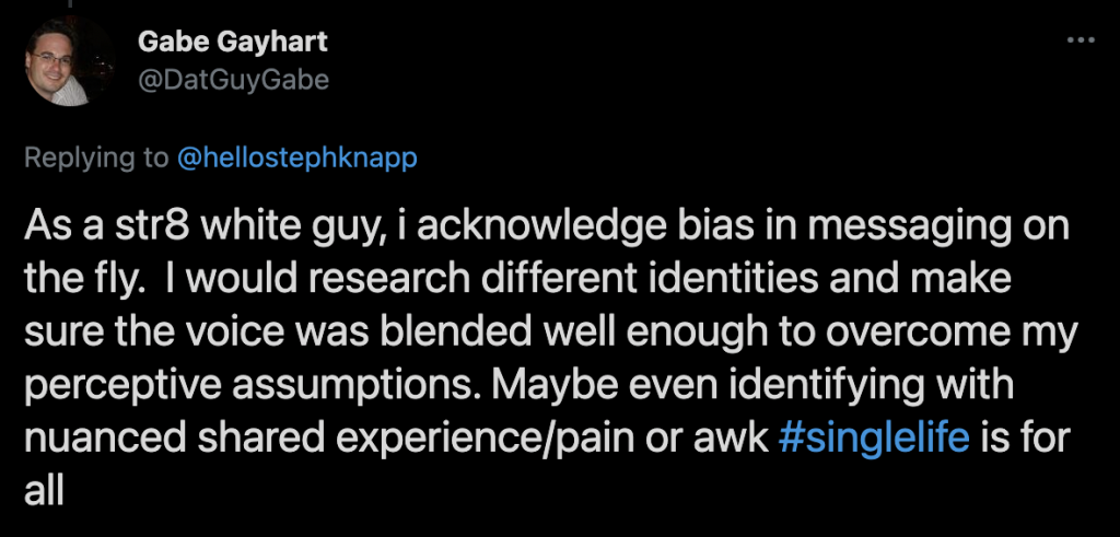 Wenn Sie das Privatleben Ihrer Abonnenten ansprechen möchten, gehen Sie leicht vor. Verwenden Sie Ihre Singles' Day-Messaging, um zu stärken und zu erheben, nicht "boohoo, ich bin einsam". Überlegen Sie, wie Sie die Individualität und den Weg jedes Einzelnen anerkennen können.