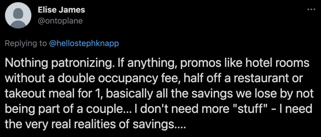 Wenn Sie Preise oder Rabatte haben, von denen normalerweise Paare profitieren, können Sie die Einsparungen auch Einzelkunden anbieten.