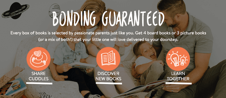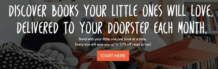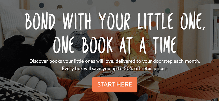Jetzt spricht die Hauptüberschrift genau das an, was angeboten wird: mehrere Bücher für Ihre Kleinen in einem Abonnementmodell, das monatlich geliefert wird.