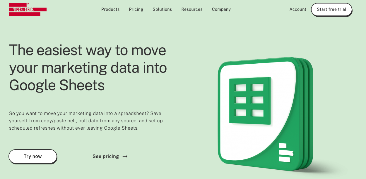 Supermetrics ist eine benutzerfreundliche Analyseplattform, die Vermarktern hilft, die Leistung über mehrere digitale Marketingkanäle hinweg zu messen und zu analysieren: