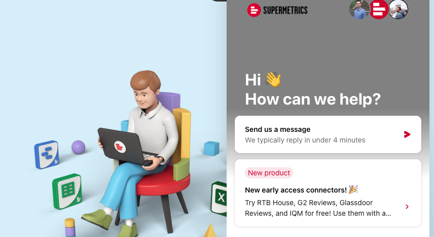 Supermetrics verfügt über ein großartiges Kundensupport-Team, das Ihnen bei Fragen oder Bedenken zur Verfügung steht. Sie bieten 24/7-Support per E-Mail, Telefon und Live-Chat.