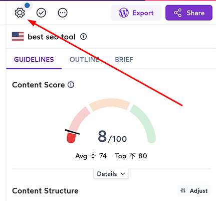 Sie können auch die Struktur Ihrer Inhalte anpassen, indem Sie die Anzahl der Wörter, Überschriften, Absätze und sogar Bilder ändern. Das Ändern der Werte wirkt sich natürlich auf Ihre Inhaltspunktzahl aus, aber das ist die wahre Magie des Tools.