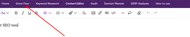Grow Flow ist das KI-gesteuerte Tool von Surfer, das Empfehlungen für interne Links, Themenideen sowie Vorschläge zur Inhaltsoptimierung bereitstellt.