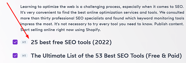 Mit anderen Worten, Sie können – fast genau – auswählen, welches Inhaltsziel Sie erreichen möchten, und dann Ihre Inhalte von dort aus aktualisieren. Darüber hinaus können Sie auswählen, welche Begriffe eingeschlossen (und welche ignoriert) werden sollen, und sie als Überschriften markieren, indem Sie auf Ihrer Tastatur „H“ drücken.