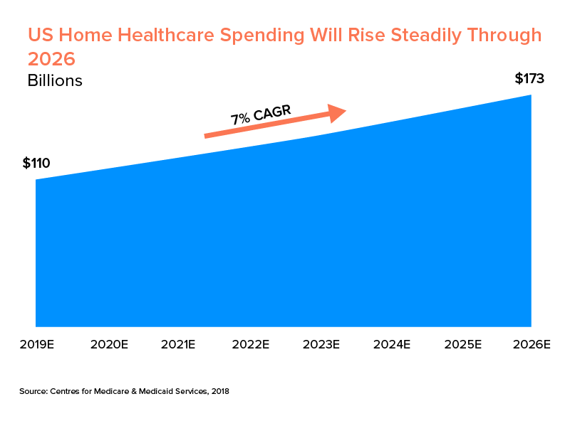 - Laut Grand View Research wurde der globale Markt für häusliche Krankenpflege im Jahr 2019 auf 281,8 Milliarden US-Dollar geschätzt.