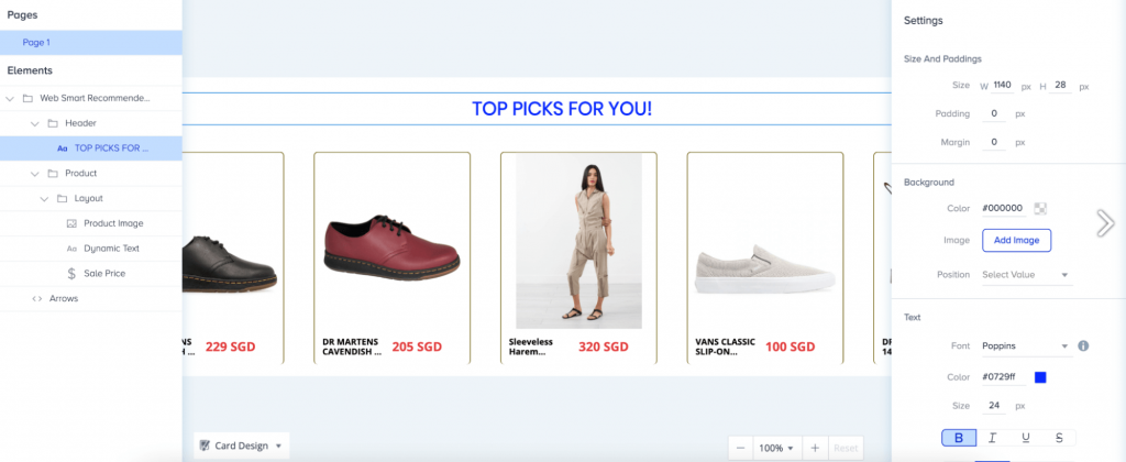 Mit den personalisierbaren Widgets von Insider können Vermarkter den Rahmen, den Hintergrund, die Animation, die Kopfzeile und mehr anpassen, um wirklich personalisierte Produktempfehlungen zu liefern.