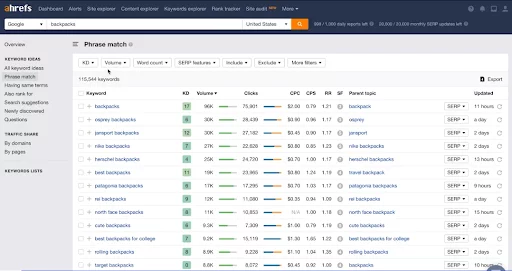 Ahrefs – ein weiteres Keyword-Tool – erfüllt eine ähnliche Funktion.