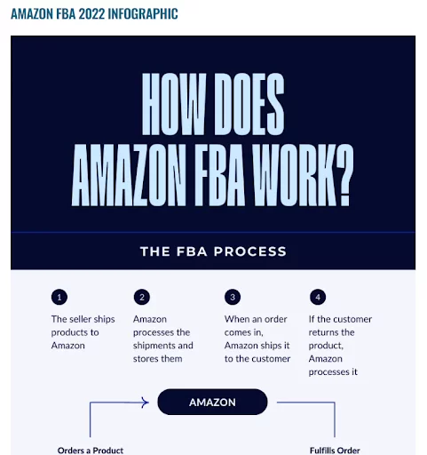 Nachfolgend finden Sie eine Infografik aus unserem Amazon FBA-Artikel . Dies hilft Benutzern, auf schnelle und leicht verständliche Weise genau zu verstehen, wie Versand durch Amazon funktioniert.