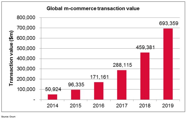 In einer Pressemitteilung sagte Ovum, dass der Aufstieg des M-Commerce durch die weit verbreitete Einführung immer leistungsfähigerer Smartphones mit größeren Bildschirmen vorangetrieben wird. Darüber hinaus optimieren Händler ihre Seiten für das mobile Einkaufen.