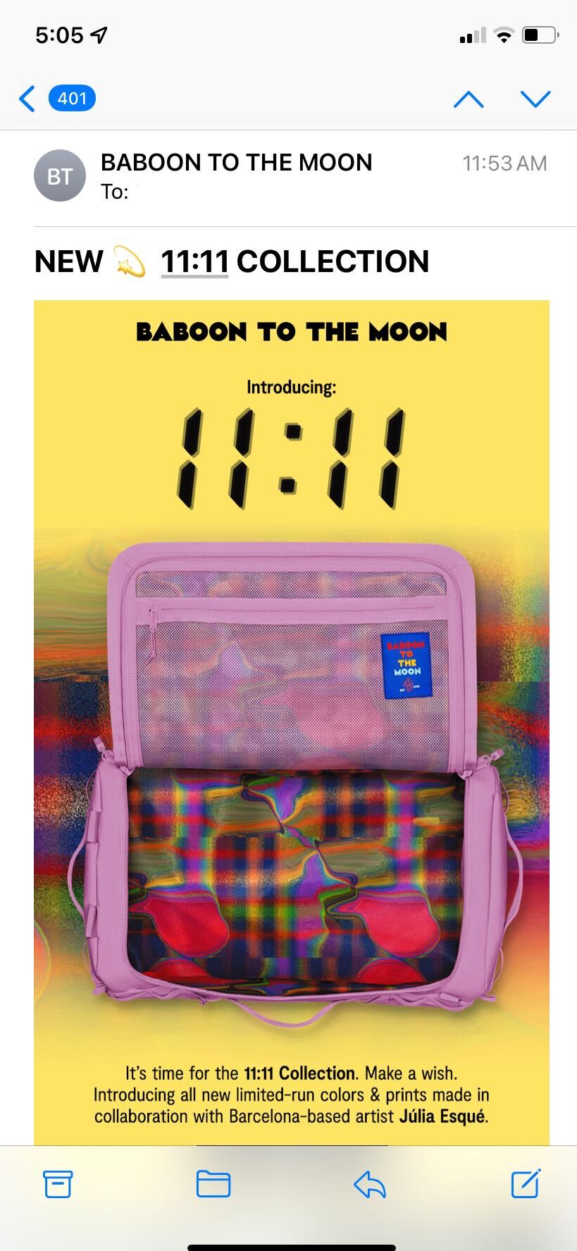 Unternehmen verlassen sich auf E-Mail-Marketing, um Kunden in jeder Phase ihrer Reise mit gezielteren Botschaften zu treffen. Schauen wir uns zum Beispiel Baboon to the Moon an. Ihre Produkteinführungs-E-Mails sehen eher wie Social-Media-Beiträge aus als Ihre standardmäßige textbasierte E-Mail. Die kühnen Bilder und der ausdrucksstarke Text fallen in überfüllten Posteingängen auf.