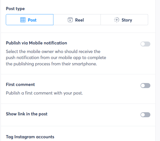 - Planen von Beiträgen, Reels und Stories. Sie können sogar Tags in Ihren erweiterten Zeitplan aufnehmen.
