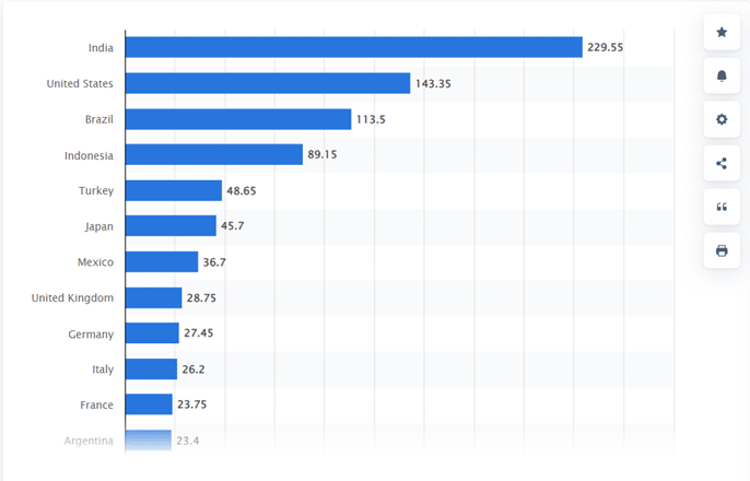 - Indien ist mit fast 230 Millionen Nutzern führend auf Instagram.
