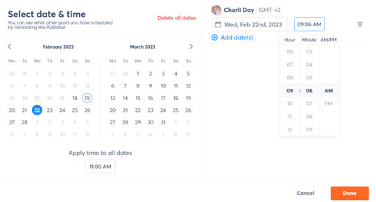 Tipp für Instagram-Posts: Viele Marken planen die Veröffentlichung von Posts genau zur vollen Stunde.(9.00 Uhr, 10.00 Uhr usw.) Sie können Ihre Beiträge so planen, dass sie innerhalb einer Stunde (9.15 Uhr, 10.20 Uhr) veröffentlicht werden, um aufzufallen und nicht in die Massenbeiträge aufgenommen zu werden, die in den Benutzerfeeds landen.