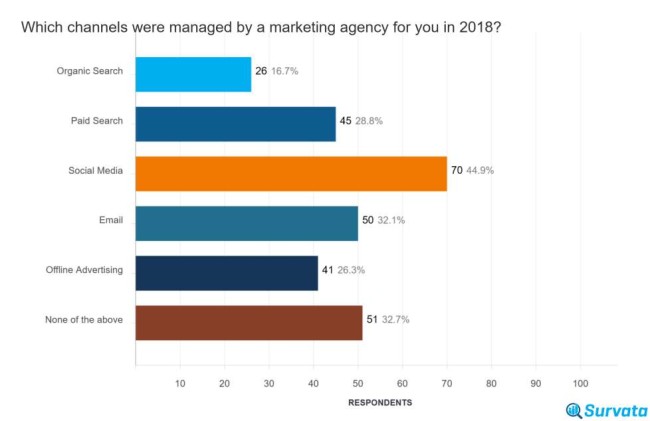 - 45% aller Befragten nutzten 2018 eine Agentur, um ihre sozialen Medien zu verwalten.