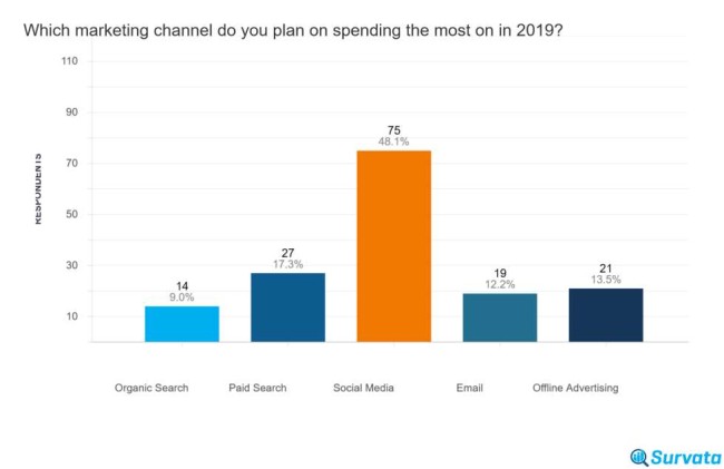 - 50 % der befragten Unternehmen gaben an, dass soziale Medien im Jahr 2018 ihre größten Marketingausgaben waren.