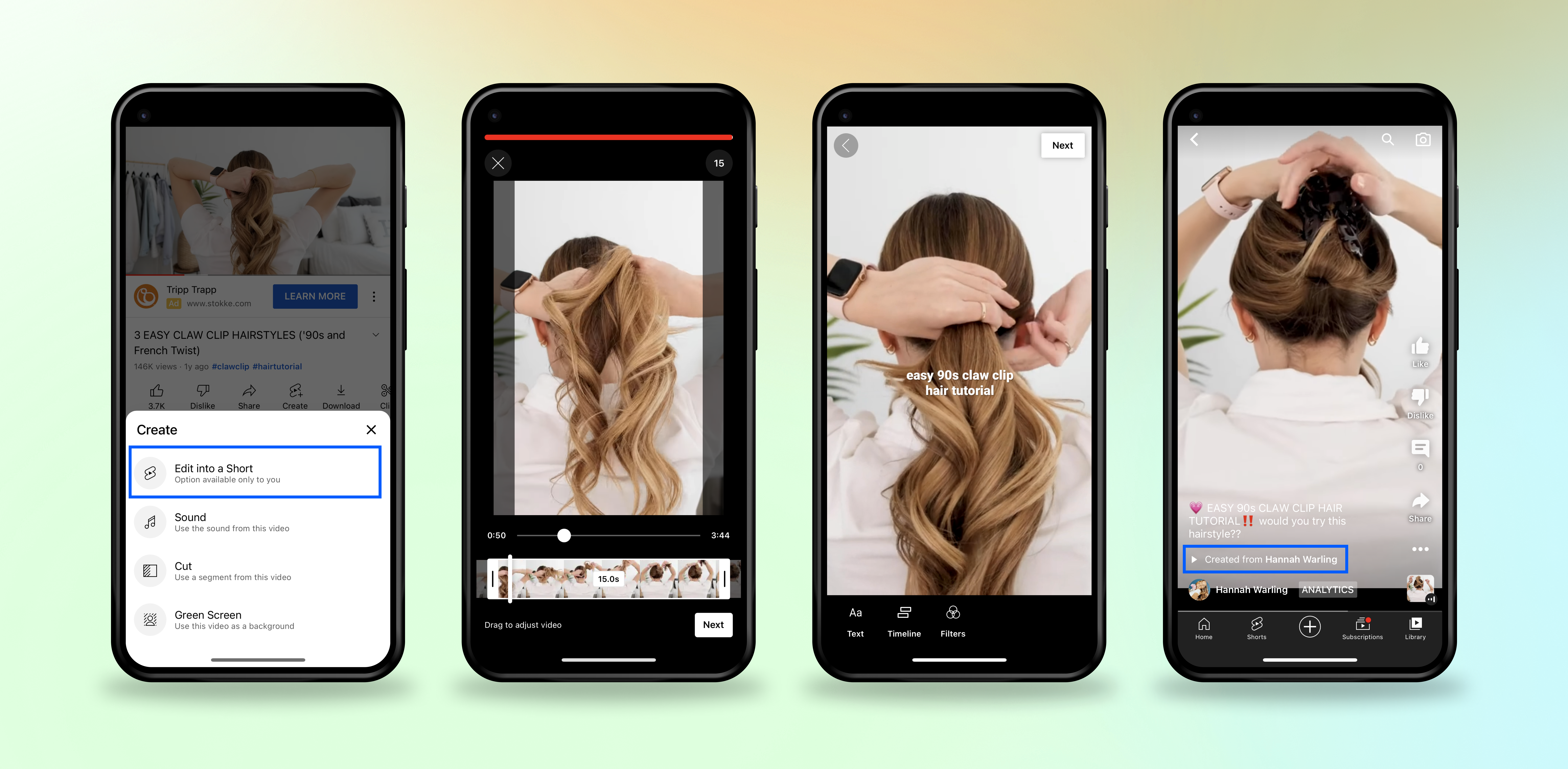 Auf Mobilgeräten können Sie einen Kurzfilm direkt in der YouTube-App filmen, und Sie können sogar vorhandene Langformvideos wiederverwenden, indem Sie sie in Kurzfilme umwandeln, ohne sie erneut hochladen zu müssen.