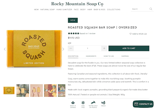 Un excelente ejemplo de descripción de producto proviene del Dr. Squatch.