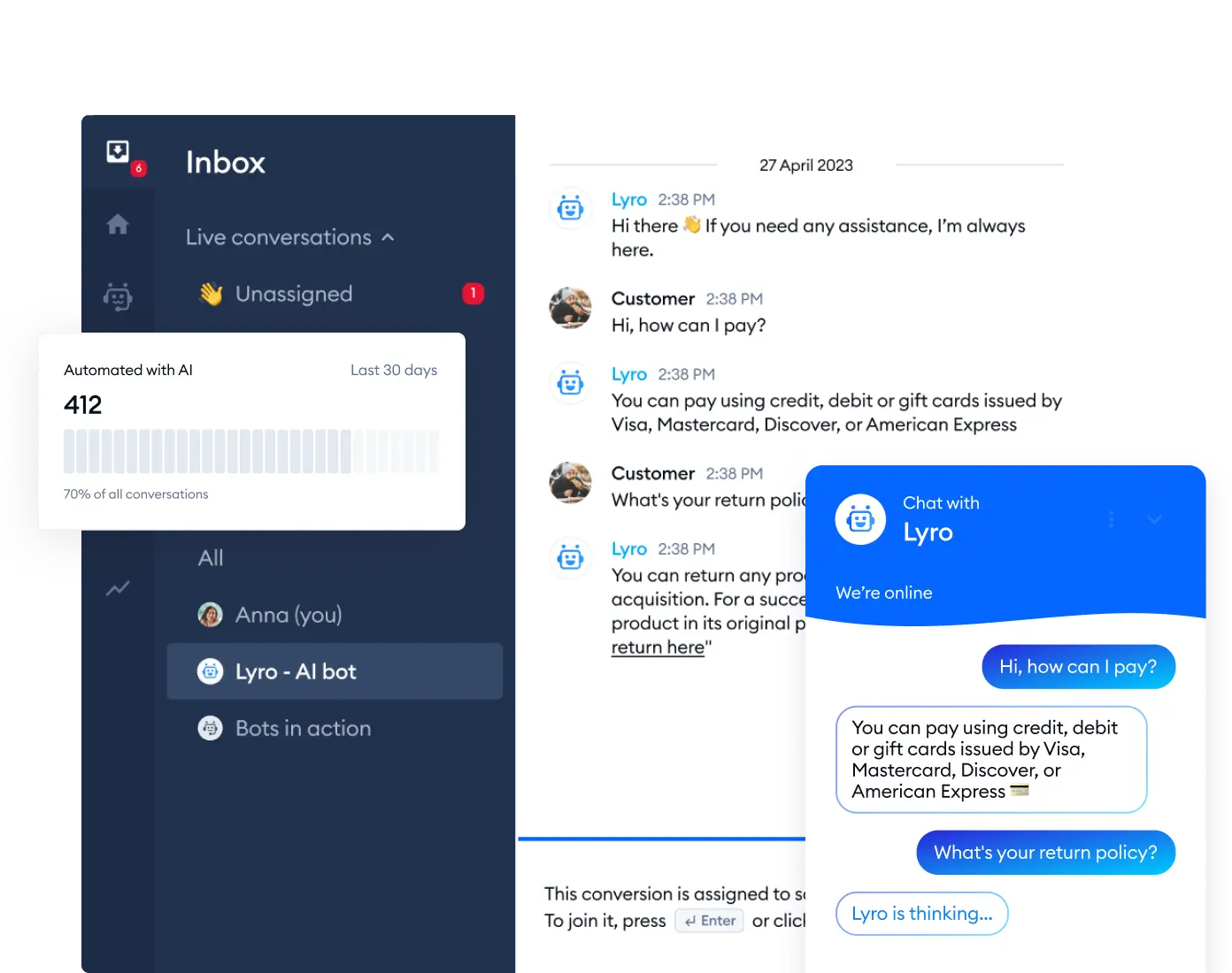 Tidio es una plataforma de chatbot impulsada por IA. Le ayuda a centrarse en la optimización de la tasa de conversión (CRO) a través de las interacciones con los clientes en su sitio web. Utilice Tidio para mejorar las conversiones web y generar clientes potenciales con chat en vivo para reducir las tasas de abandono y fidelizar a los clientes.
