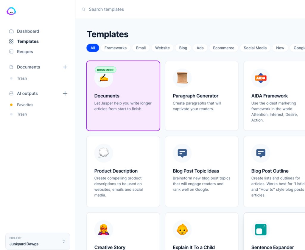 Pruebe Jasper gratis o compre uno de sus planes Creator, Team o Business para obtener aún más funciones.