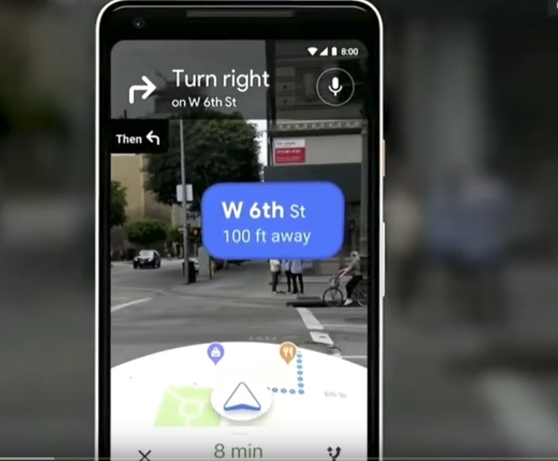 Google Maps es pionera absoluta en ofrecer indicaciones en tiempo real. Google Maps anunció su nuevo desarrollo en abril de 2018 utilizando Realidad Aumentada para facilitar la orientación espacial. Esta aplicación de Realidad Aumentada combina la vista de la calle en tiempo real con consejos de navegación e información adicional que los viajeros pueden necesitar.