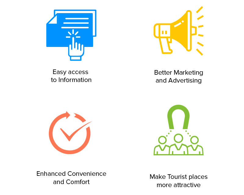 La disponibilidad oportuna de información sobre la marcha puede marcar la diferencia en las experiencias de los viajeros y eso es algo que las aplicaciones móviles hacen que suceda. Las aplicaciones turísticas basadas en AR ayudan a los viajeros a encontrar el camino a través de flechas y otras señales relacionadas con la navegación hacia una ciudad desconocida. Una aplicación AR actúa como una guía las 24 horas del día, los 7 días de la semana y ayuda a eliminar las barreras del idioma para los usuarios internacionales.