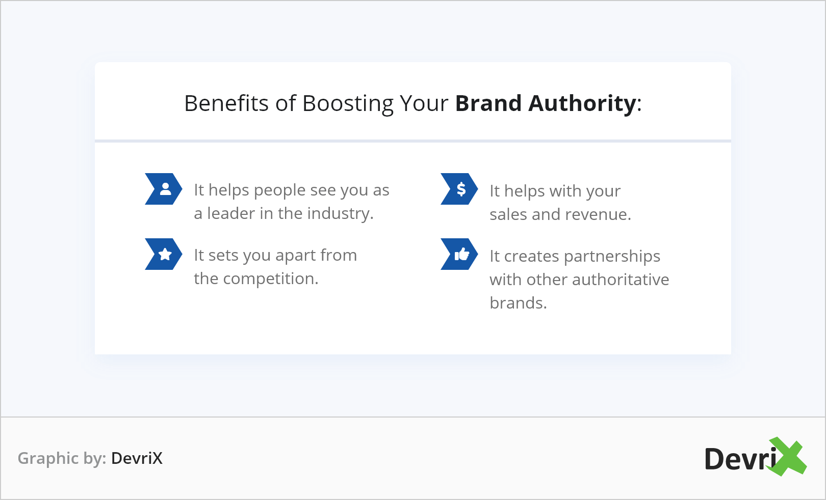 Un alto nivel de autoridad de marca le permite a su audiencia saber que su marca es legítima. También les ayuda a percibirlo como un líder en la industria. Sin embargo, una autoridad no es algo que pueda simplemente reclamar, ya que tendría que ganársela a través de la estrategia y los medios correctos.