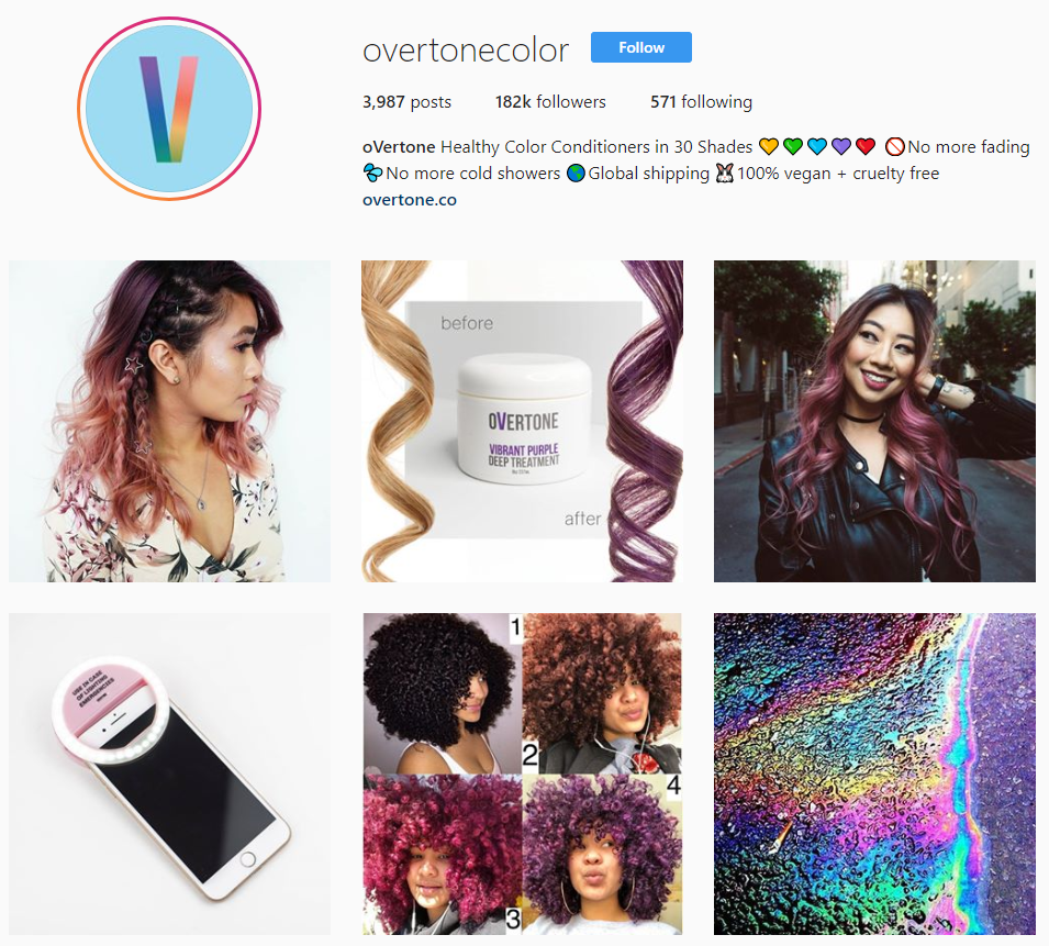 Por ejemplo, vea cómo oVertone hace un uso audaz del color tanto en su biografía como en su contenido de Instagram.