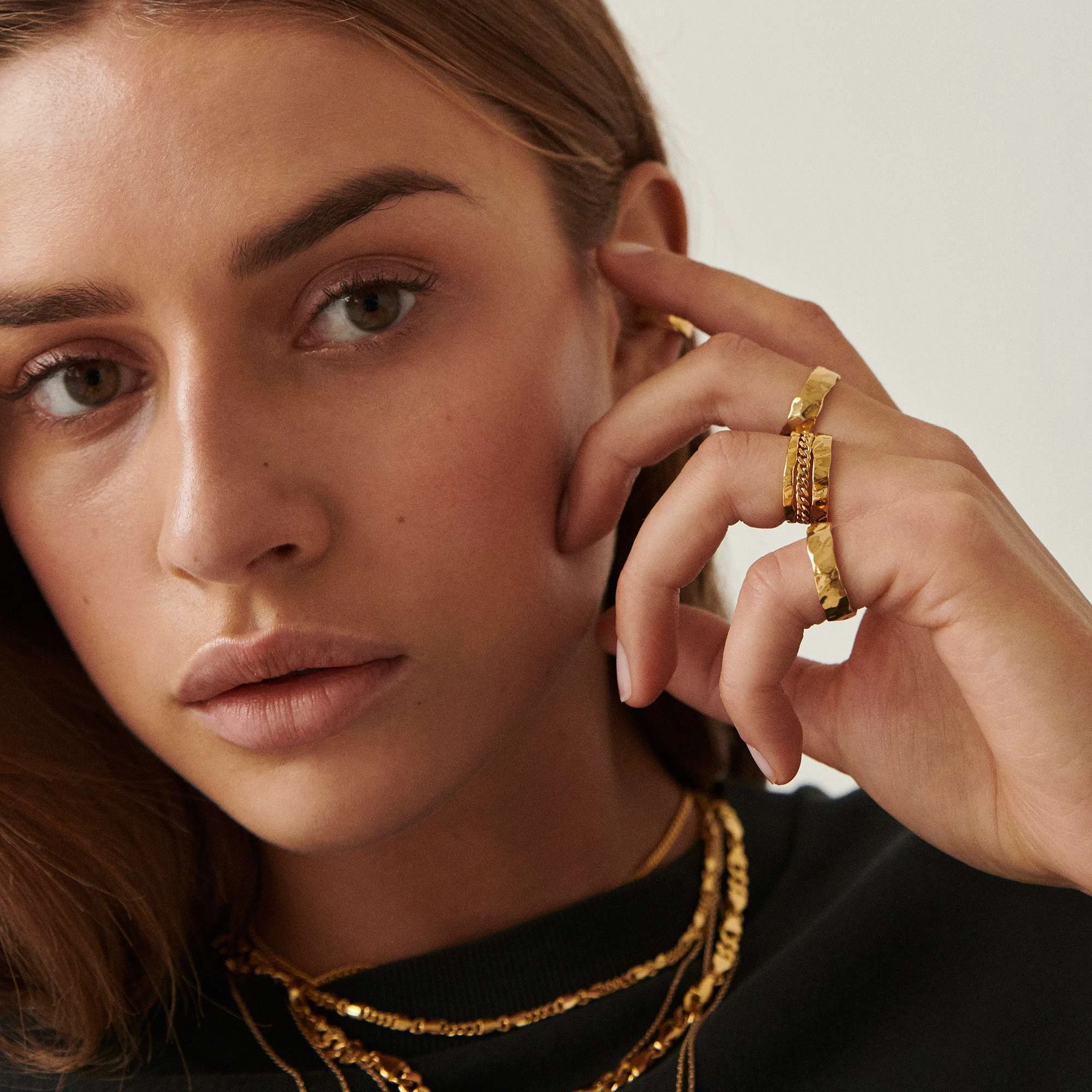 Daniel: Lo que aprendí es que a veces solo tenemos que confiar en el estómago de Camille, porque tiene esta forma intuitiva de ver las cosas antes de que empiecen a ser populares. Así que la primera pieza de joyería que Camille realmente diseñó fue este plato, el anillo Panzer, es como lo llamamos. Y no era popular en ese momento, era esta vieja cadena de hip-hop que de repente Camille pulió a un tipo de joyería femenina de repente, pero se volvió inmensamente popular. Y ahora lo ves en todas partes, en todo el mundo. Y estoy seguro de que no inspiramos a las personas en los EE. UU. a comenzar a crear este tipo de joyería, pero es súper popular ahora, pero no lo era hace cinco años. Entonces, algunas de estas cosas que se le ocurrirán a Camille, mientras que algunas personas dirían: "No, no es mi tipo", pero luego, uno o dos años después, ves personas que usan esto.