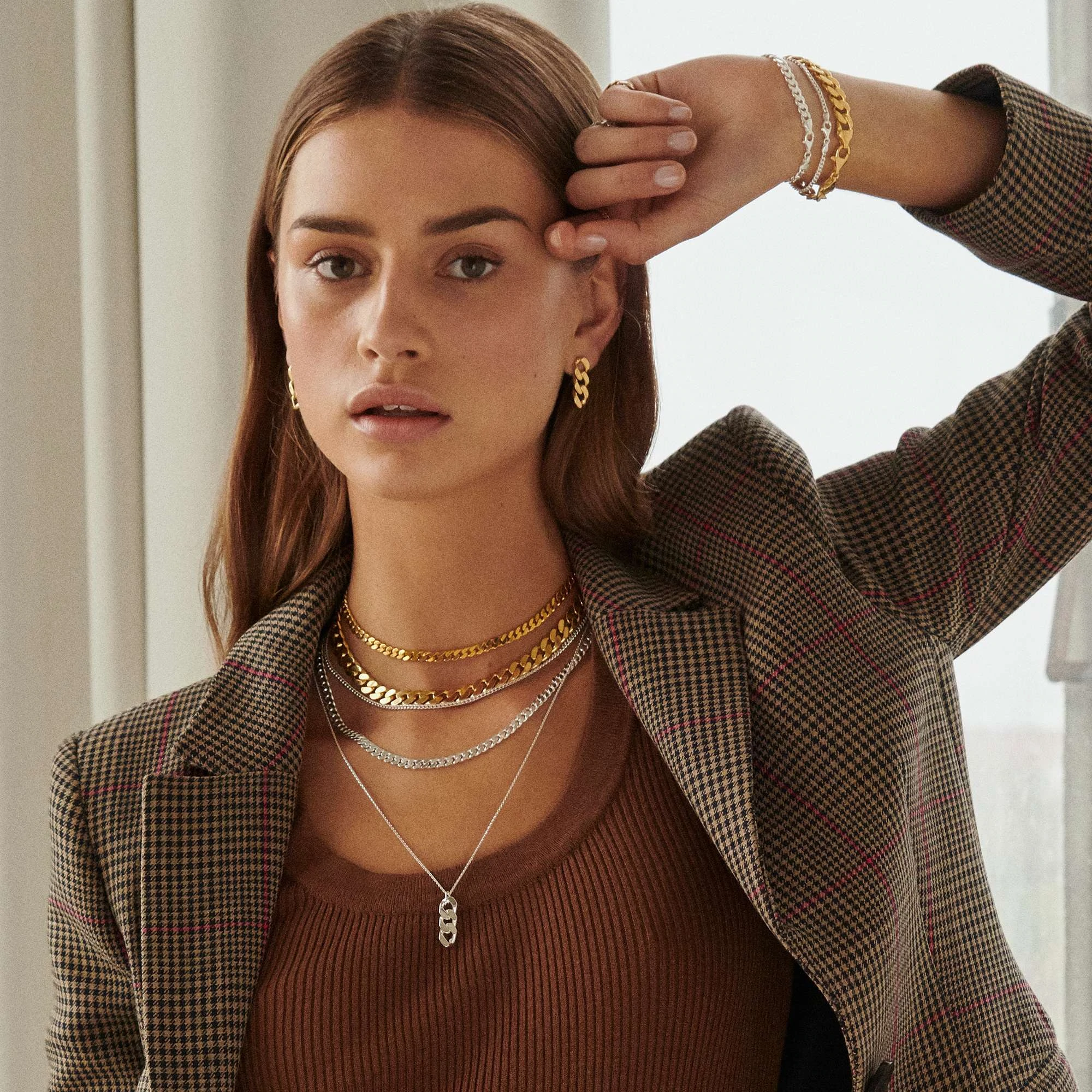 Camille: Normalmente, antes de comenzar a hacer joyas, en realidad no usaba muchas joyas porque soy más una chica juvenil. Me gustan los pantalones anchos y holgados y una sudadera y cosas así. Así que no pensé que había tanta joyería en ese estilo. Así que estoy creando un tipo de joyería gruesa, cruda, con una vibra más deportiva. Solo creo que me uso como referencia. Además, nuestro segmento son chicas jóvenes de mi edad, tengo 26 años. Empecé cuando tenía 21 años. Así que solo uso Instagram para ver: "¿Qué le gusta a mi segmento? ¿Les gusta esto también?" Si. Siempre he seguido la sensación que tengo en el estómago.