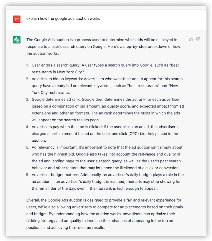 Mientras tanto, ChatGPT puede ayudar tanto a las marcas como a Google a comprender mejor la intención de un usuario detrás de cada búsqueda y ofrecer resultados más relevantes (o clasificarse mejor para dichas consultas).