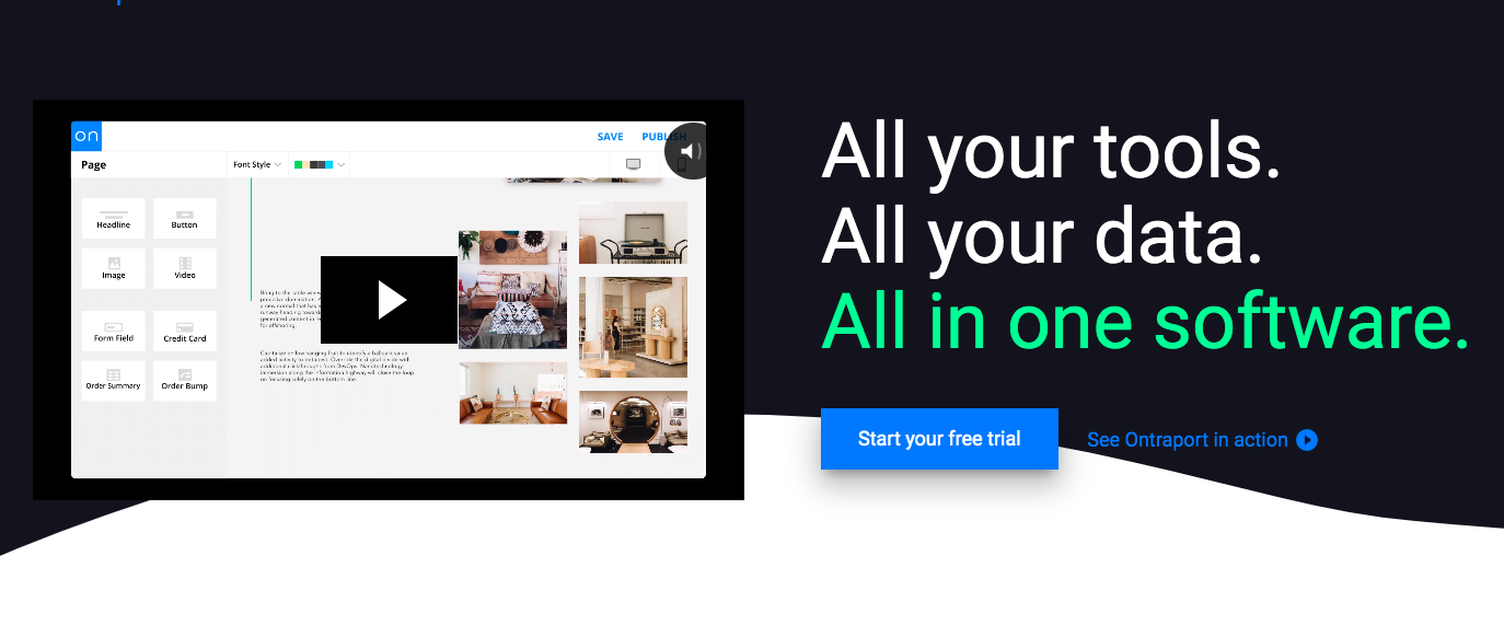 Ontraport es una solución todo en uno para especialistas en marketing digital experimentados que une sistemas analíticos, CRM, características especiales de comercio electrónico y fuerza de ventas, etc.