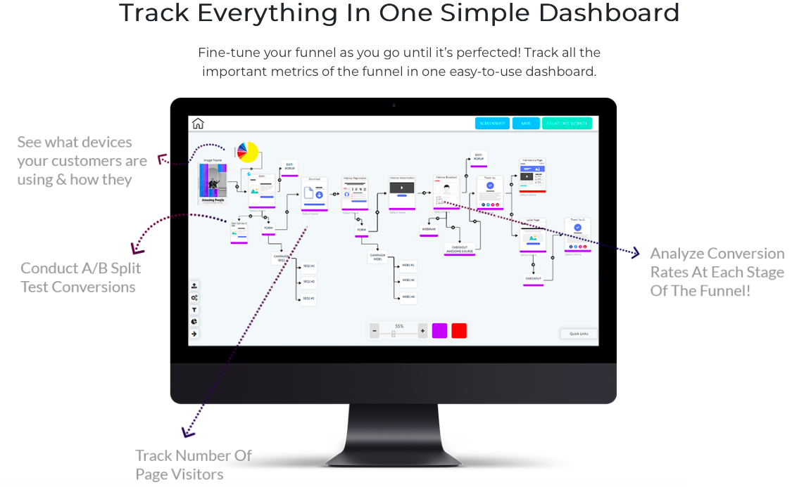 - Proporcione un sistema de análisis avanzado que ayude a implementar embudos de ventas en varios minutos.
