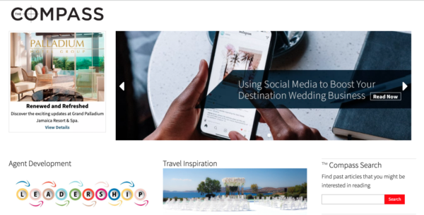 La revista Compass y el sitio web están repletos de educación oportuna de la industria sobre temas como marketing en redes sociales, desarrollo de agentes y destinos de viaje atractivos (como se muestra en la imagen de arriba).