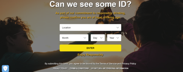 La siguiente imagen muestra la puerta de edad para acceder a su sitio, lo que refuerza los esfuerzos de la marca para mantener el contenido relacionado con el alcohol fuera del alcance de los visitantes menores de la edad legal para beber.