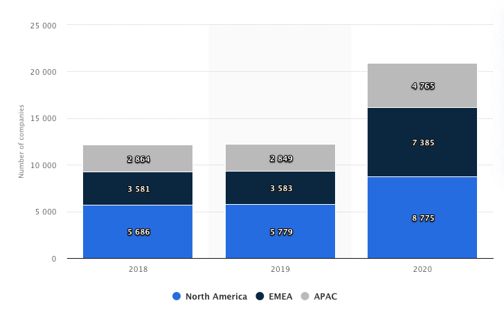 La tasa de crecimiento del sector es exponencial: la tecnología financiera es una fuerza digital que está cambiando todo el sector. El dato es claro: las inversiones han crecido en todo el mundo, pasando de 1.890 millones de dólares en 2010 a 53,3 en 2019.