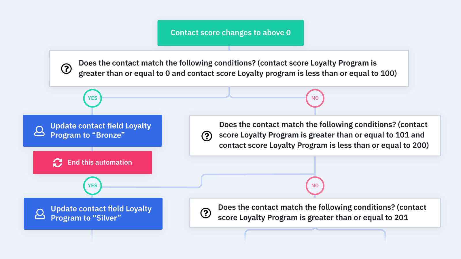 Esta automatización le permite segmentar a los miembros de su programa de fidelización de clientes en niveles según una puntuación basada en puntos, y luego enviarles recompensas y descuentos en consecuencia. Obtenga la Receta de Automatización del Programa de Lealtad por Niveles aquí.