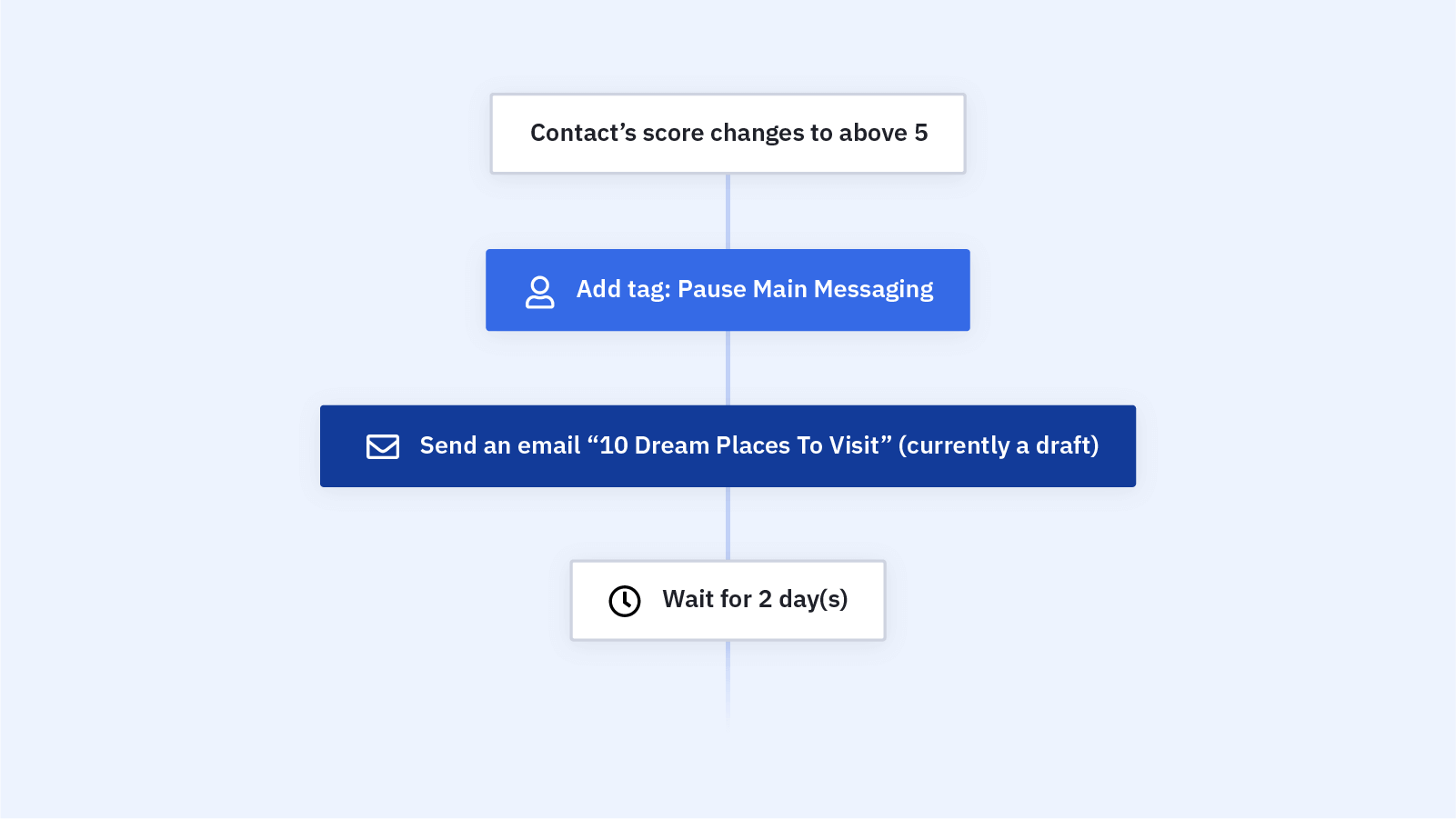 Una de las formas en que puede conectar la automatización y las ventas es a través de la puntuación de clientes potenciales. Puede crear automatizaciones que rastreen las acciones de los contactos y asigne valores de puntos para mostrar qué clientes potenciales tienen más probabilidades de interactuar o cuáles podrían necesitar una secuencia automatizada de reenganche.