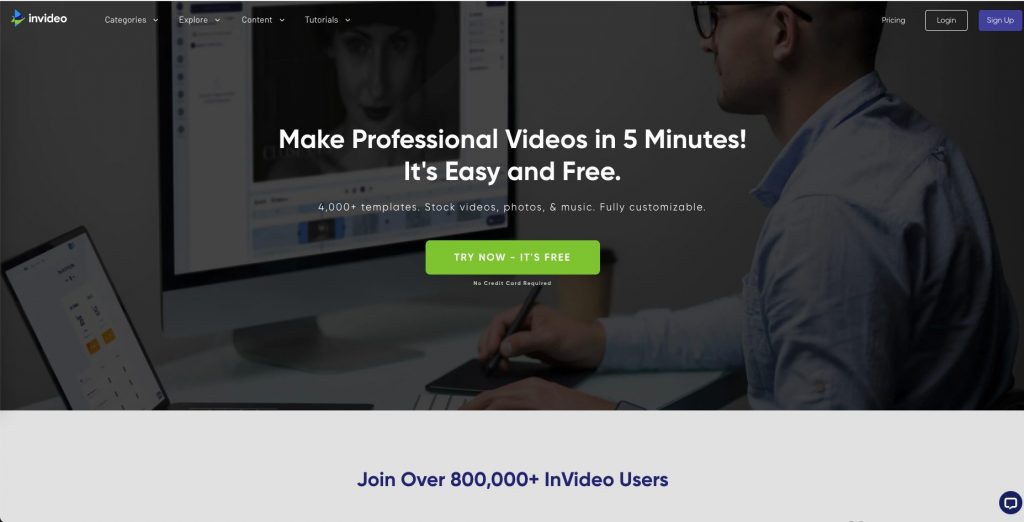 InVideo es uno de los mejores creadores de anuncios de video de comercio electrónico gracias en parte a la interfaz impulsada por IA. La plataforma también incluye una biblioteca de plantillas, animaciones, imágenes y música que puede agregar fácilmente a sus anuncios de video. La versión gratuita permite a los usuarios crear y exportar hasta 60 videos con marcas de agua cada mes.