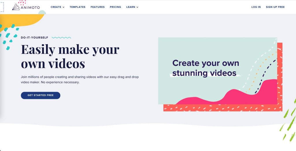 Animoto es otro de nuestros creadores de anuncios de video de comercio electrónico favoritos en este momento. No incluye plantillas, pero viene con una biblioteca que incluye guiones gráficos en su oferta de más de un millón de videoclips e imágenes. Simplemente cargue sus imágenes o videoclips, edite el video con herramientas básicas de edición de video y estará listo para publicar sus anuncios en cualquier plataforma que elija. Incluso puede agregar filtros, voces en off y más a sus anuncios de video.